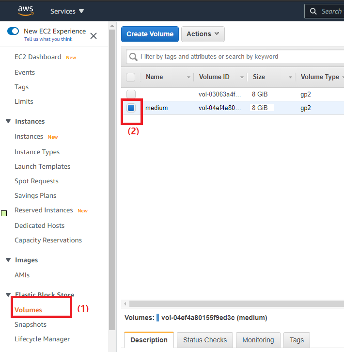 EC2의 Volumes 클릭 후 원하는 인스턴스를 클릭한다.